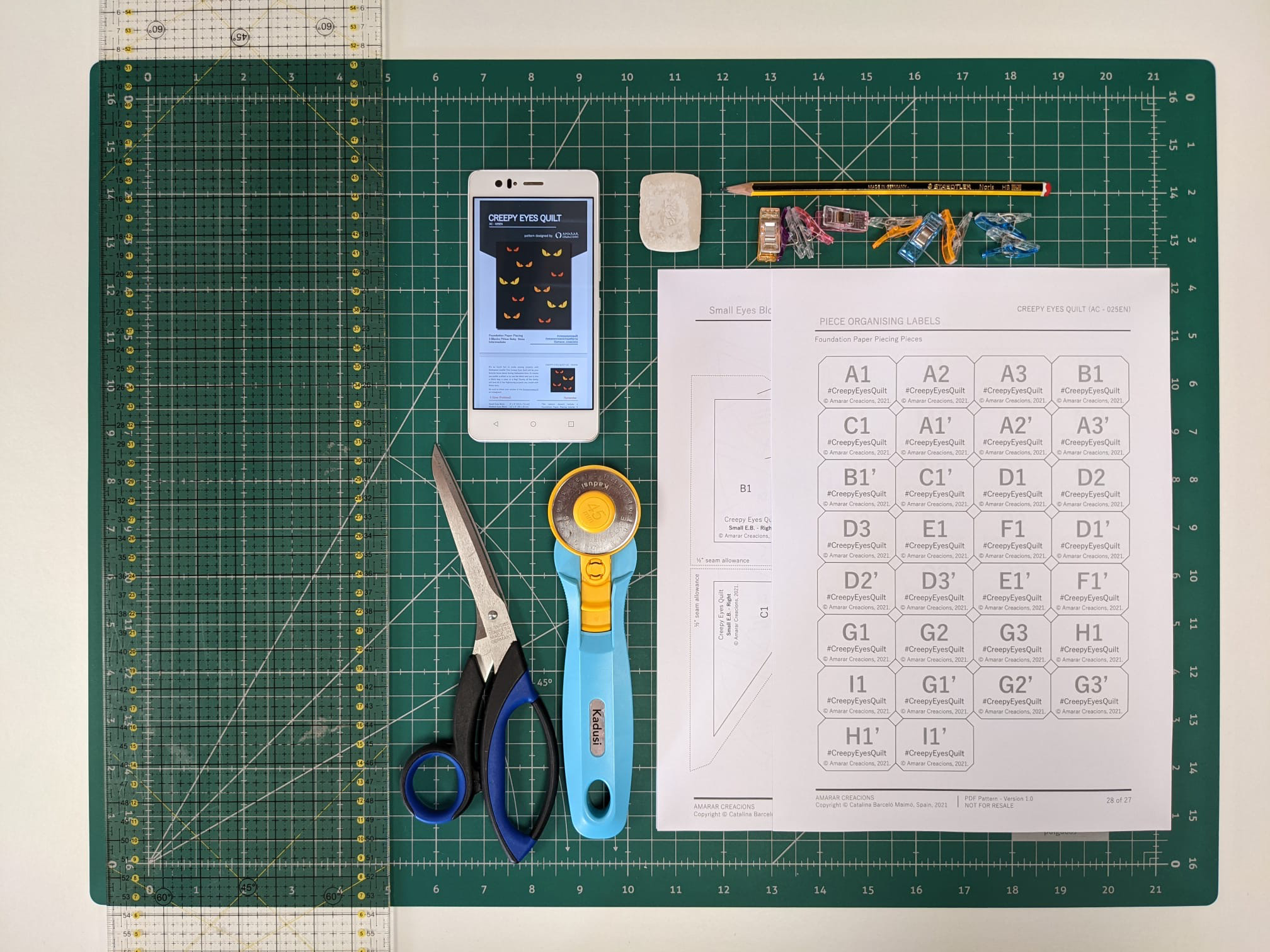 El primer dia de Creepy Eyes QAL és aquí! I no puc estar més emocionada i nerviosa a la vegada! Durant aquestes setmanes, vull mostrar-te com el Foundation paper piecing i cosir corbes no són tècniques difícils, ¡i realment pots gaudir-ho! I per què no compartir aquesta experiència amb altres cosidores de tot el món?
