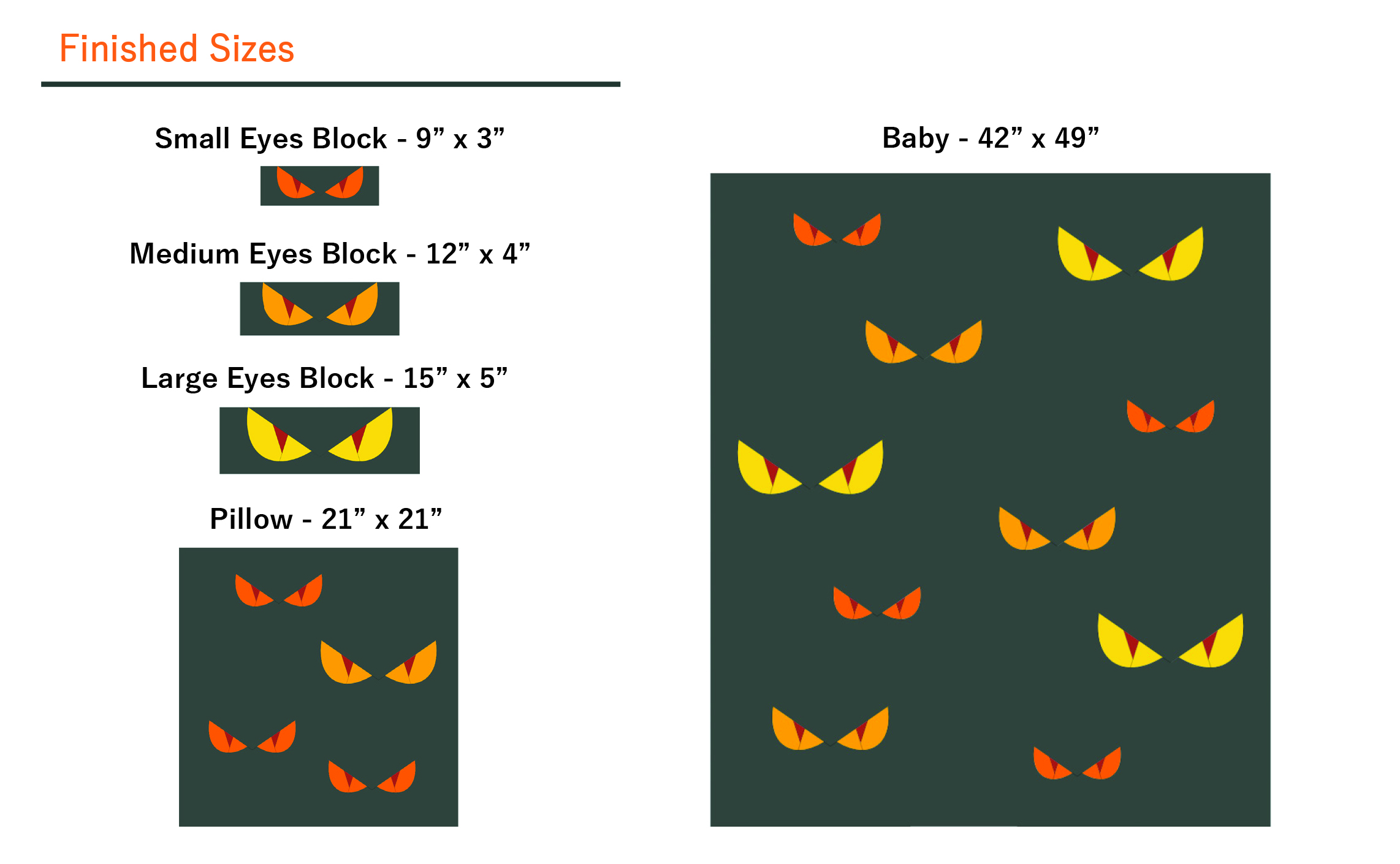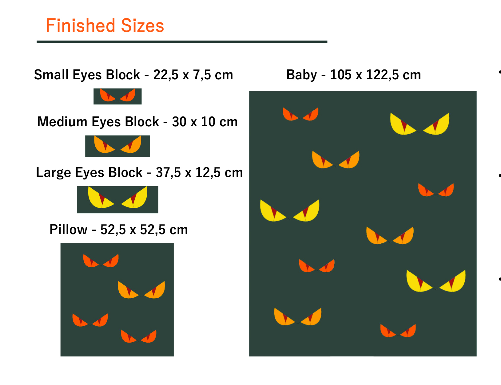 - Tu fas la màgia! Sempre! Com a dissenyadora de patrons, m’agrada sentir que amb un patró poso les bases d’un disseny. Llavors, els/les cosidores/os són els que realment fan projectes increïbles i únics amb les seves combinacions de teles i colors. I vull afegir més! M’agrada que els meus patrons siguin realment personalitzables i que puguis fer molts projectes diferents amb ells. Mira els Creepy Eyes, no creus que podrien encaixar en qualsevol decoració de Halloween? Comença a pensar en el que faràs durant aquest QAL, però espera a decidir perquè et donaré idees realment divertides a continuació!