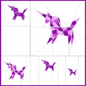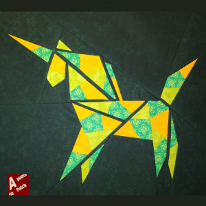 El patró de l’Unicorn és el setè patró Foundation Paper Piecing de la Col·lecció completa d’Animals Origami i la seva dificultat ja és una mica més elevada que els patrons que integren la Sèrie Marina. Aquest patró conté moltes unitats, algunes d’elles molt petites, i moltes seccions, però això no us ha d’espantar. Jo crec que amb aquesta tècnica, el Foundation Paper Piecing, una vegada li has agafat pràctica, no hi ha patrons més difícils que altres, sinó que són patrons més laboriosos, que requereixen un grau d’atenció més elevat quan es munten però que es poden fer perfectament. Que no us espanti que digui que és “Avançat“!