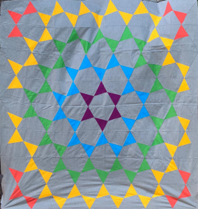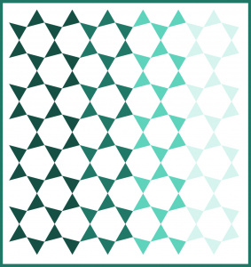 Aquest patró era una idea que tenia al cap des de feia temps i que mai no trobava el moment per fer-la realitat. La inspiració del disseny Starlike prové del meu amor per les matemàtiques i la geometria, i el pensament en utilitzar la forma del triangle, però no en forma regular. Va ser difícil dibuixar els triangles per tal que coincidissin totes les puntes, però després de fer alguns càlculs vaig descobrir com fer-ho i la idea es va convertir en un veritable dibuix. Va ser molt divertit jugar amb els colors i els petits triangles … Com podeu veure, el patró està pensat per fer el disseny en 4 colorsen degradat. El degradat es pot fer de moltes maneres diferents, cosa que fa que puguin sortir dissenys gairebé diferents. Així doncs, es tracta d’un disseny que permet una personalització elevada i amb le qual es pot fer un edredó molt diferent del que he fet jo, amb les mateixes plantilles, només jugant amb els colors.