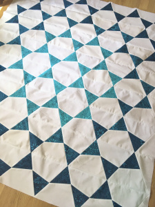Va ser un desafiament tenir el meu Quilt Starlike acabat a temps abans de la data límit que tenia. I va ser gràcies al meu marit que va voler ajudar-me a tallar, planxar i dissenyar el encoixinat (és enginyer!) que vaig aconseguir fer-ho a temps. Així que moltes gràcies a ell també!