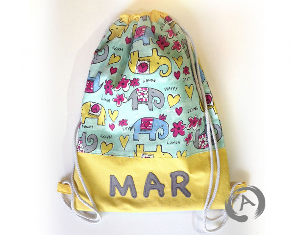 Descripció: Bossa de tela personalitzada amb cordó per dur berenar, roba, etc.