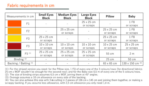 • plantilles per elaborar els blocs d’ulls en 3 mides,
