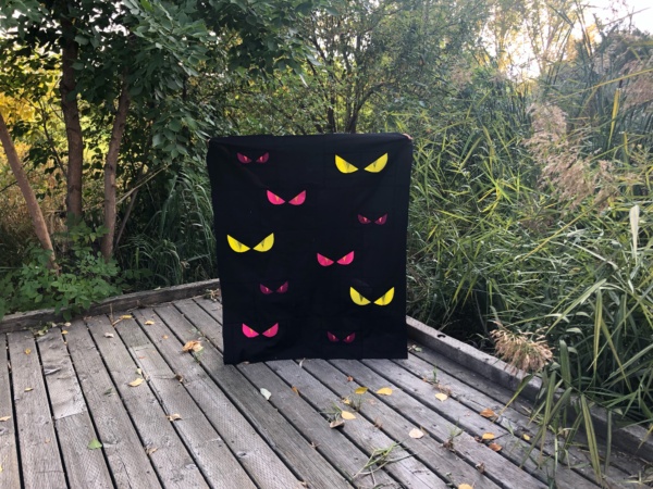 És molt divertit fer projectes de costura amb motius de Halloween! Aquesta manta amb ulls esgarrifosos serà la teva decoració preferida durant l’època de Halloween. O potser prefereixes un coixí o fer servir el bloc i convertir-lo en una bossa de tela, una capa o una bandera? Segurament, a tota la família li encantaran tots els projectes que creis amb aquests ulls.
