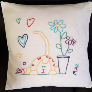 Aquí el teniu. Vos agrada? Vos agradaria aprendre aquesta tècnica i poder personalitzar les vostres creacions amb un nom o missatge fets amb tela?