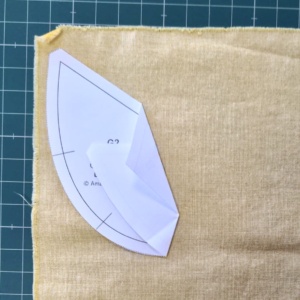 - Cut the fabric exactly at the same shape and size as the template. To know the exact shape you need to cut you can leave the template over the fabric and cut all around it or draw the template shape on the fabric. To cut the fabric, you can use a ruler and rotary cutter to cut the straight sides and with the cutter, going slowly, you can also cut the curve. And if you don’t like to cut curves with a rotary cutter you can cut them with scissors.