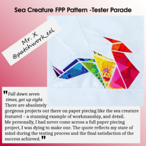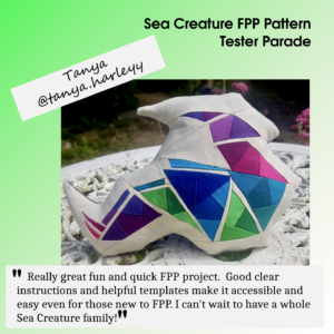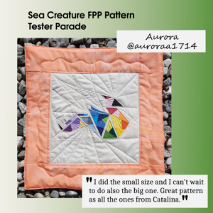 Today is the release of the Sea Creature Foundation Paper Piecing Pattern, and after nearly a year without publish a pattern it’s really exciting. Check bellow the testers parade and try to make your colour version of the Sea Creature in the embed window below, and don’t forget to post it!!