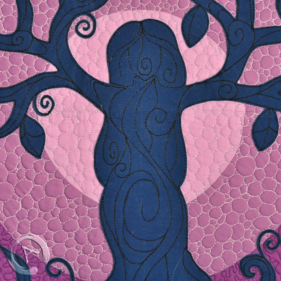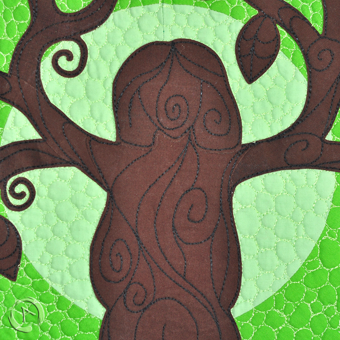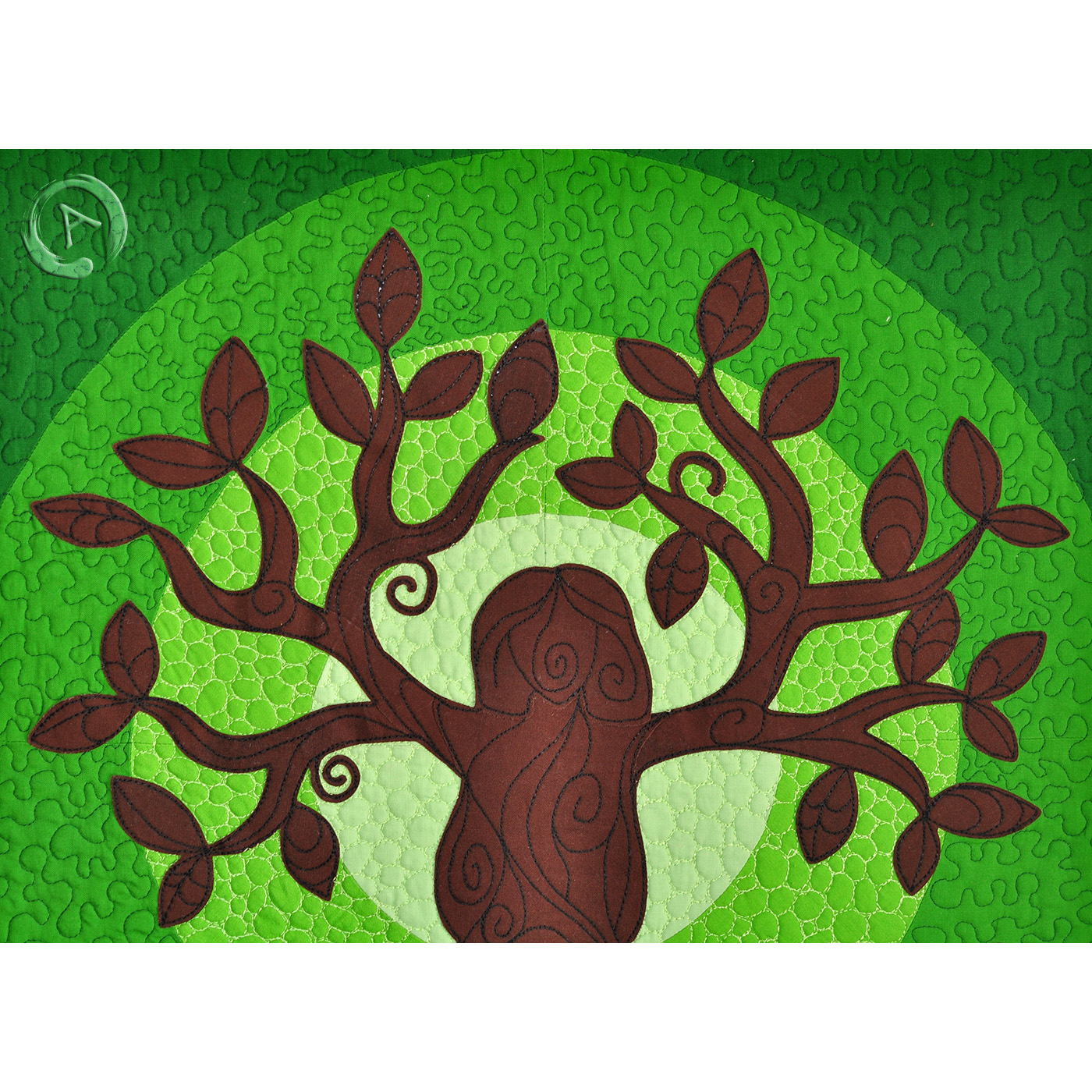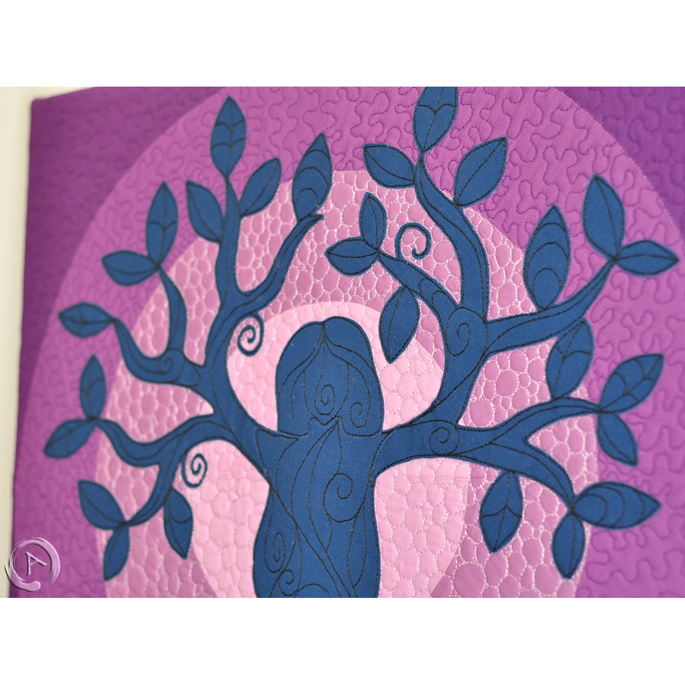 I designed this art quilt when I was pregnant of my fist daugther. At this moment, in my mind there was a lot of ideas about the life, ours roots, the connections between these roots and the growing of my daugther, the streght of she was giving me and I to her,… and I put all of this thoughts in a tree of life. The gradient background means for me the light and the hope of a new life.