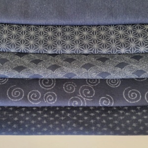 For my samples, I wanted to make something different than my usual colour/fabric choices, so I decided to use printed fabrics for the panel backgrounds, and not any printed fabrics, I wanted to use Japanese printed fabrics. I was lucky to find a nice shop here in Spain, Japonerias, that provides the most beautiful ever real Japanese fabrics I’ve ever seen. And among them, I found a collection with dark indigo background and different japanese motifs that was perfect for my project.