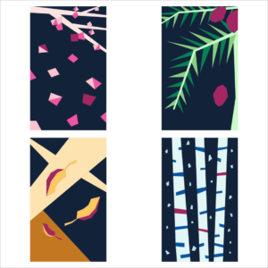 Notice I wanted to connect all the designs with one colour, the Cerise. Every design has 3 elements with this colour. It’s a way to think in nature, like everything in this world is connected!