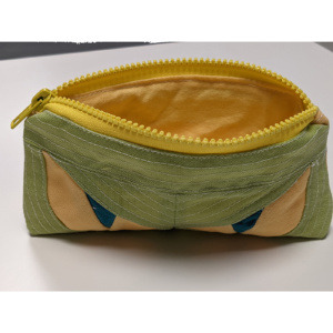 Aquí está mi tutorial para hacer un estuche con cremallera simple, y puedes adaptarlo hacer el tamaño y la forma que desees. Si hace una diagonal cosida en las dos puntas inferiores, la bolsa tendrá un fondo más grande y podrá pnatenerse en pie.