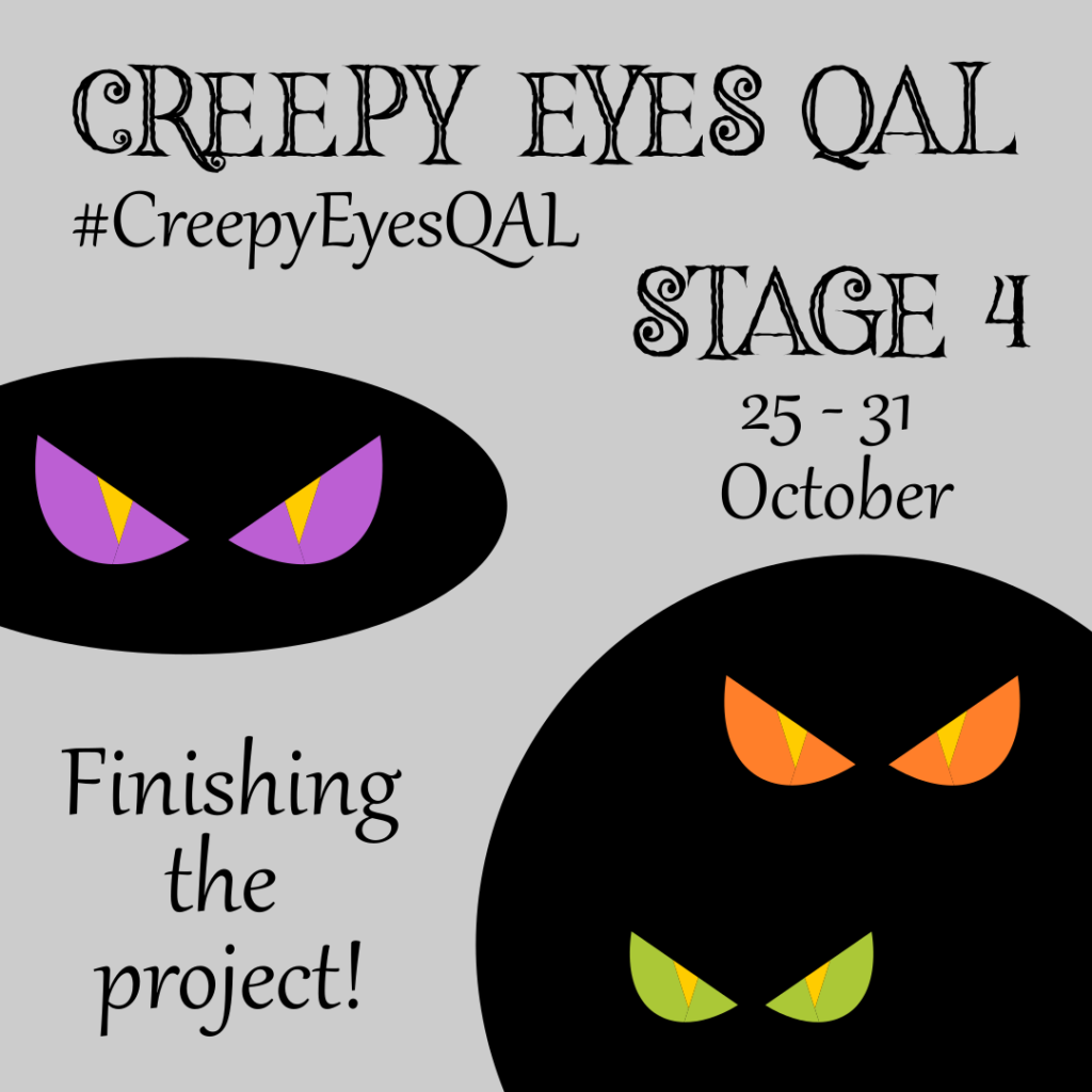 Y aquí estamos! En la última etapa del QAL Creepy Eyes: Finalización el proyecto! Ha sido una semana muy emocionante ver cómo crecían todos los ojos todo el mundo! Ahora toca terminar el proyecto. Y tú, ¿qué vas a hacer? Acolchar tu manta? Hacer una funda de almohada? Una bolsa? Una bolsa de tela? Un juego de posatassons? No puedo esperar para ver todas sus fotos finales!