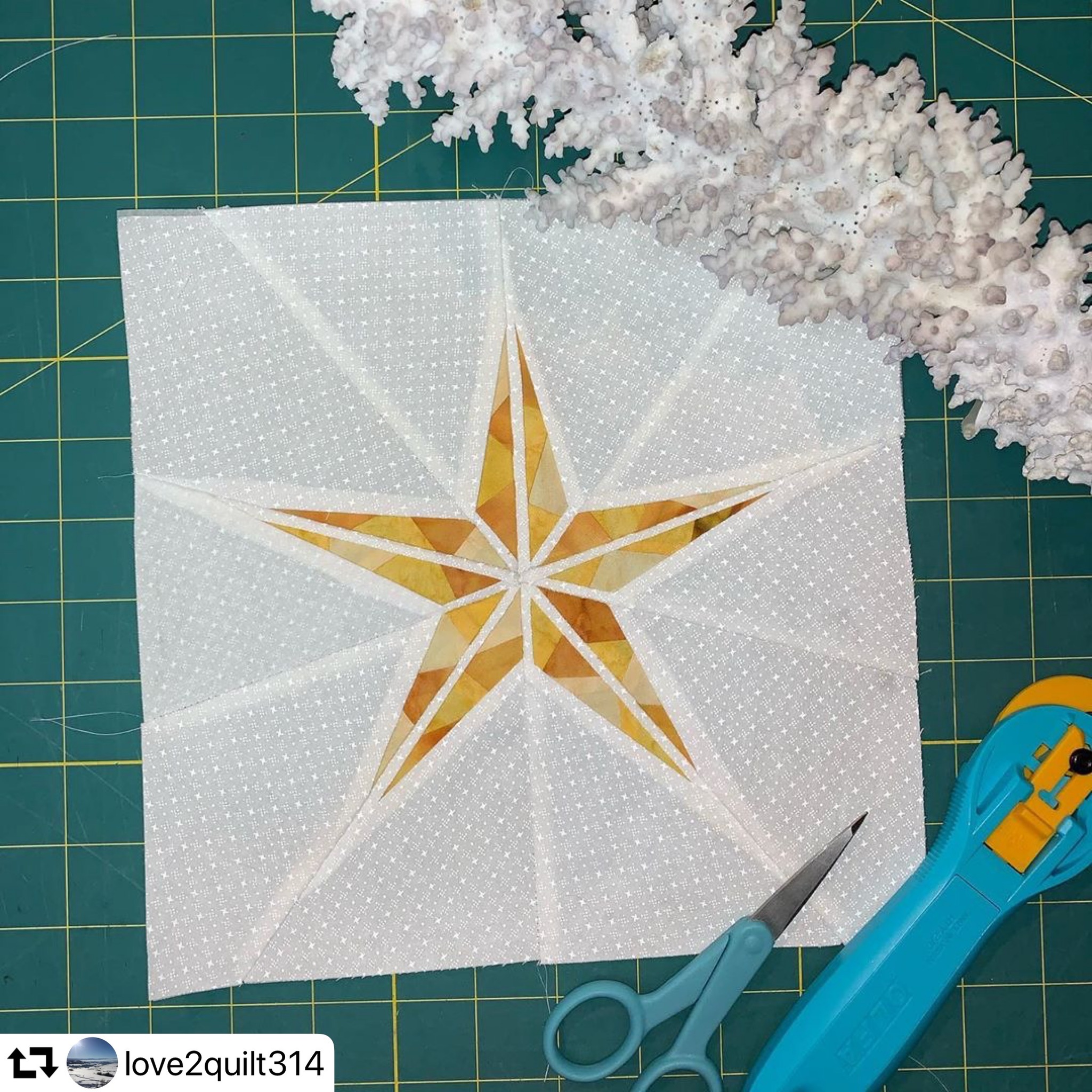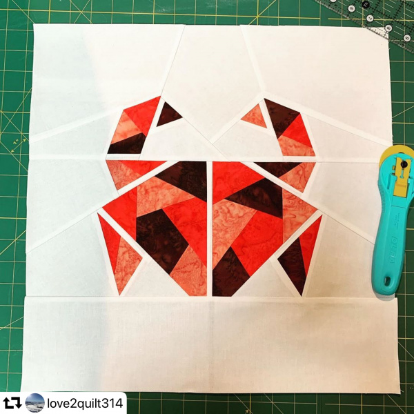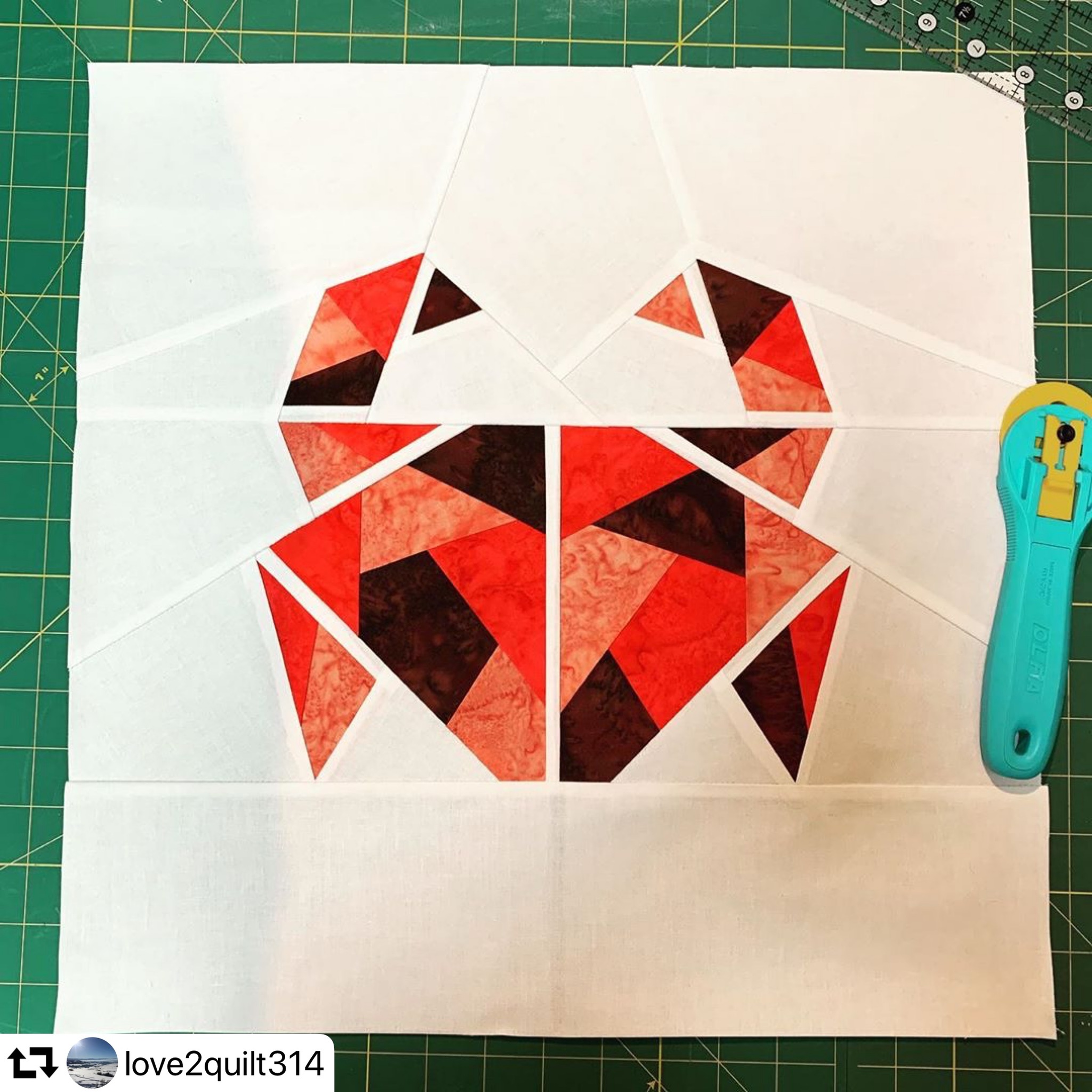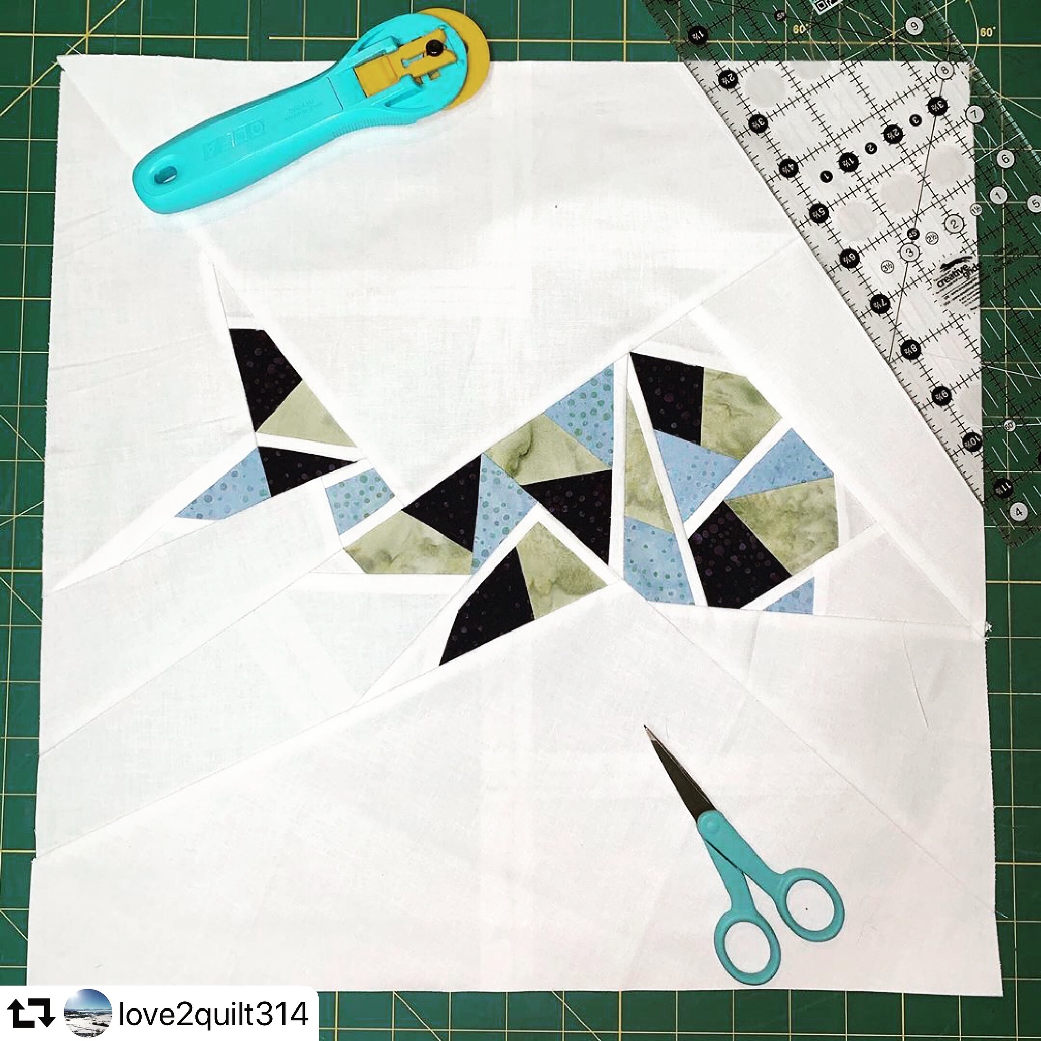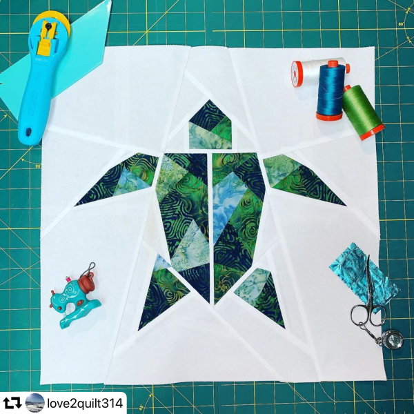El crédito por los bloques cosidso que se muestran es para Joanne Harris (@turtlequilterjo), Fatima Lucas (@love4quilt314) y Amarar Creacions.