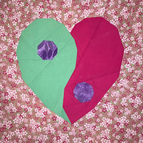 - El bloque verde y rosa de 42 cm está elbaborado por Fatima Lucas (@love4quilt314)