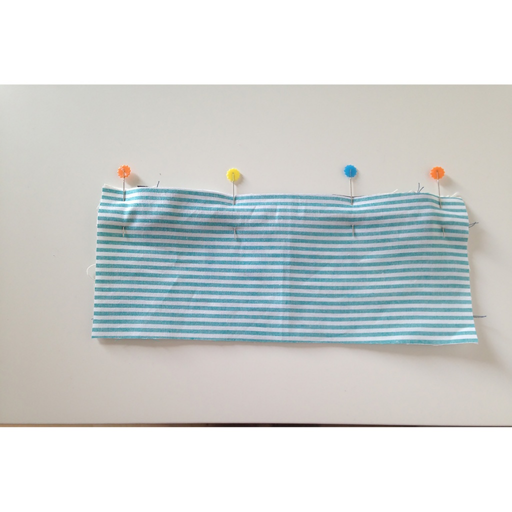 Nos quedará un rectángulo, y tenemos que ir poniendo alfileres alrededor para sujetar las telas y que se no muevan cuando cosemos con la máquina.