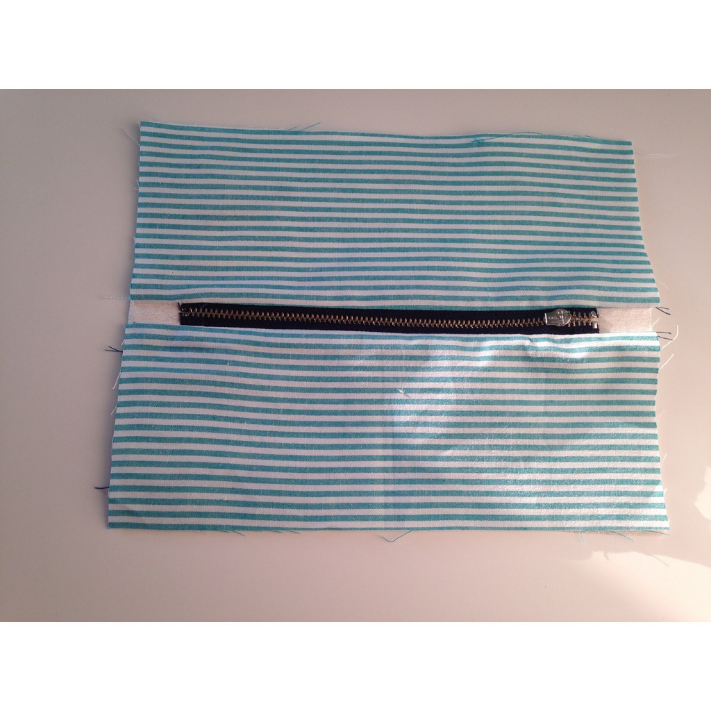 - Damos la vuelta al trozo de tela y lo planchado para que quede bien plana y recta. Hacemos otro pespunte a unos milímetros del borde de la tela para fijarla bien a la cremallera.