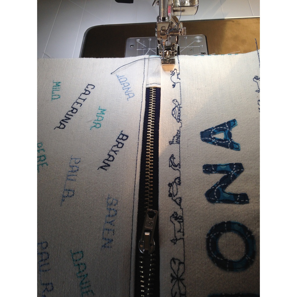 En la parte posterior podéis ver varios nombres. También están hechos con la función de bordado de la nueva máquina. Este proyecto me ha servido para familiarizarme un poco más con esta nueva aliada!!