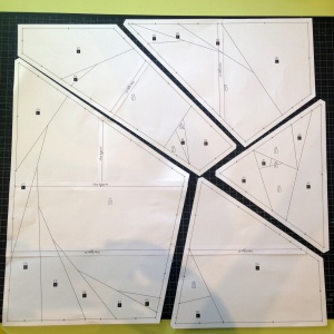 Con esta técnica iremos uniendo las telas unas al aldo de las otras. Con un patrón sencillo con una pieza de papel es suficiente pero con un patrón como este necesitaremos unas cuantas piezas de papel diferentes que llamaremos SECCIONES.