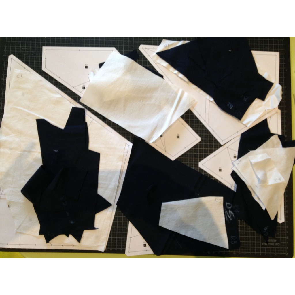 • Y muy IMPORTANTE !!! antes de levantarse cada papel de encima de la tela que hemos cortado debemos marcar con un rotulador soluble / borrable la letra + número que indica el papel. Si no lo hacemos así y mezclamos todas las telas luego no sabremos a qué sección van, ni el orden en que coserlas.