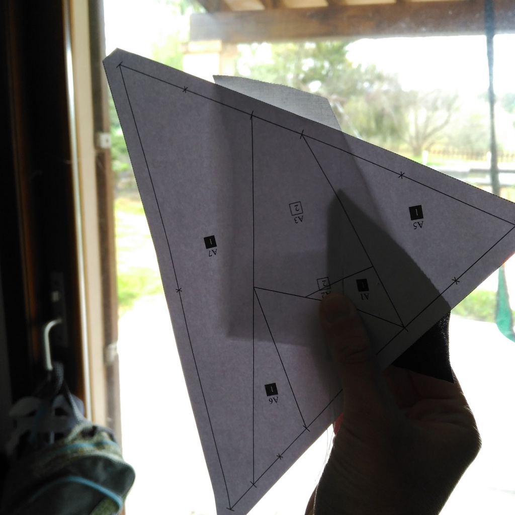 Tomamos el papel y al trasluz le ponemos la tela A1 detrás que coincida con la figura A1 del papel. Es decir: