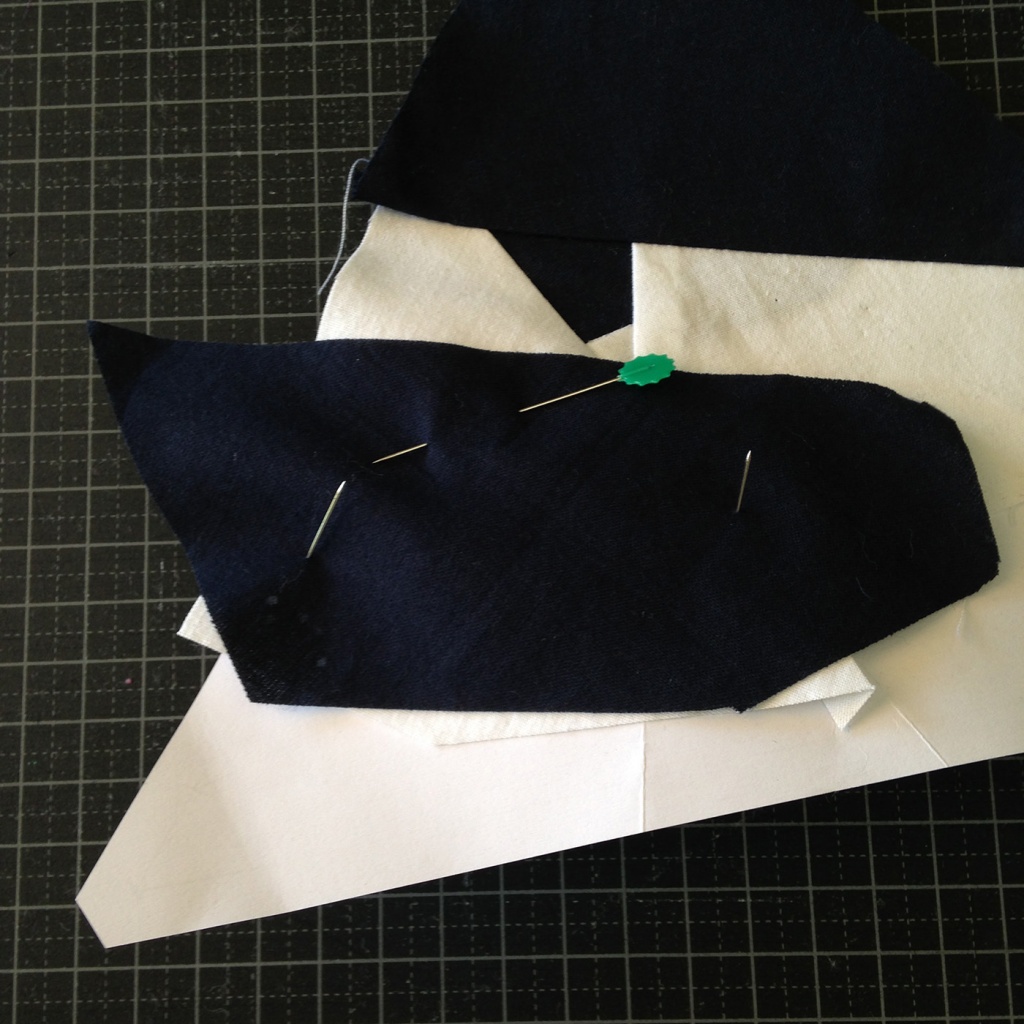 Veréis que el dibujo en papel es el dibujo que queremos conseguir pero invertido, al revés. Esto es porque vamos a coser las telas en la parte de atrás del papel y cuando quitemos el papel nos quedará el dibujo en la orientación que queremos. Este hecho ocurre siempre, así que uses el patrón que uses debes pensar que el papel tiene el dibujo invertido.