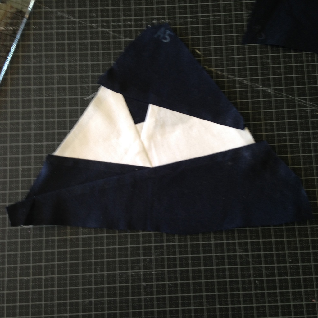 • Doblamos la tela A7 por la costura que hemos hecho, con el fin de que estén las caras buenas de todas las telas hacia arriba.