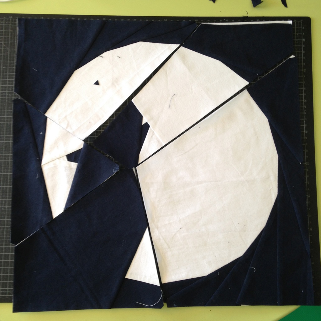 En primer lugar, hay que aclarar que el “foundation paper piecing” es una técnica de patchwork que consiste en unir trozos de tela con una base de papel para crear una imagen o un bloque con unas formas determinadas. Con esta técnica se pueden conseguir figuras muy complicadas de manera relativamente sencilla. Hay que diferenciarla del “English paper piecing” donde las piezas de tela se unen a mano.